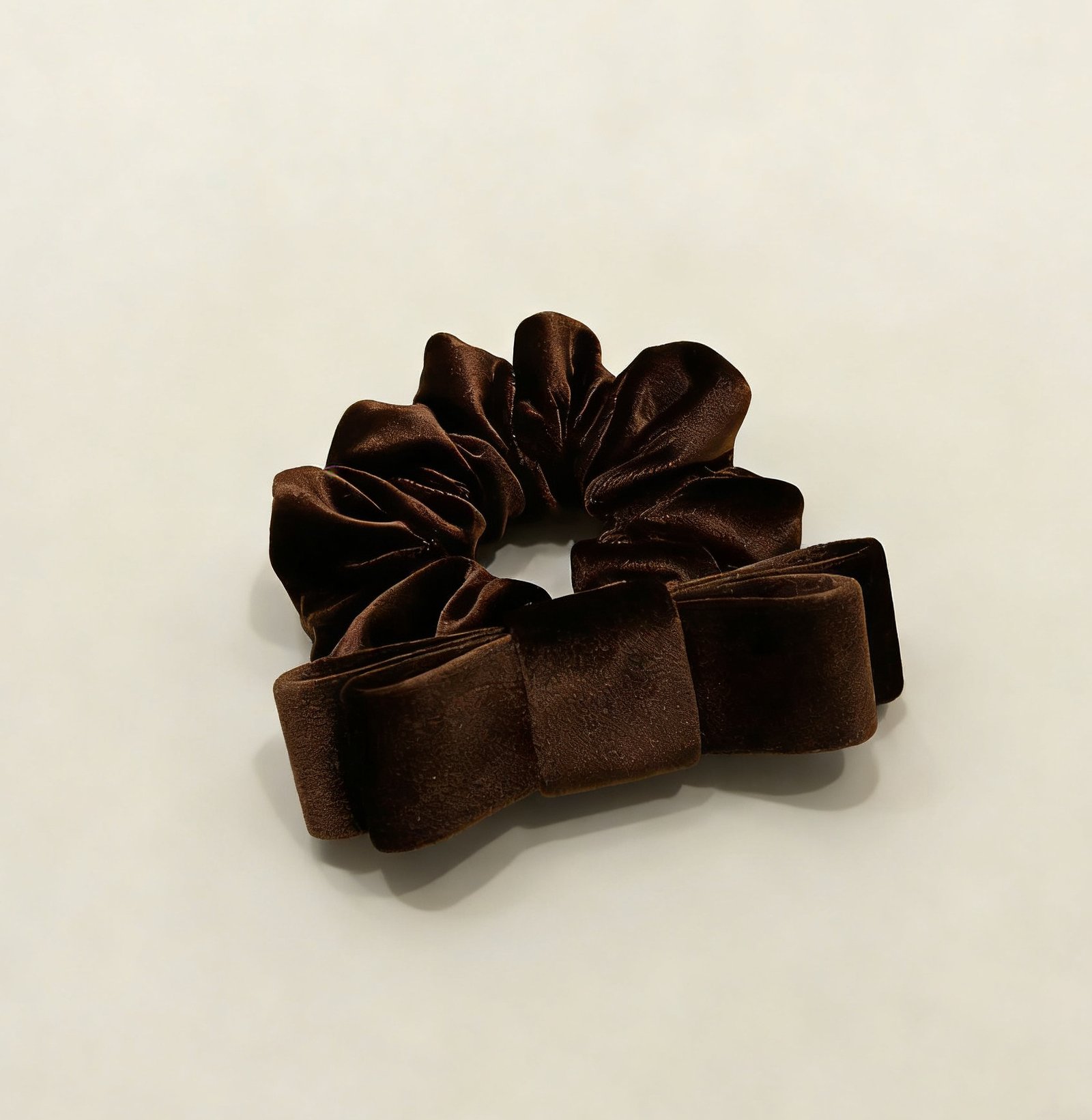 Indulge in softness and style with this scrunchie! Crafted from smooth, plush velvet fabric, it features a charming attached bow that adds a touch of sophistication to any hairstyle.