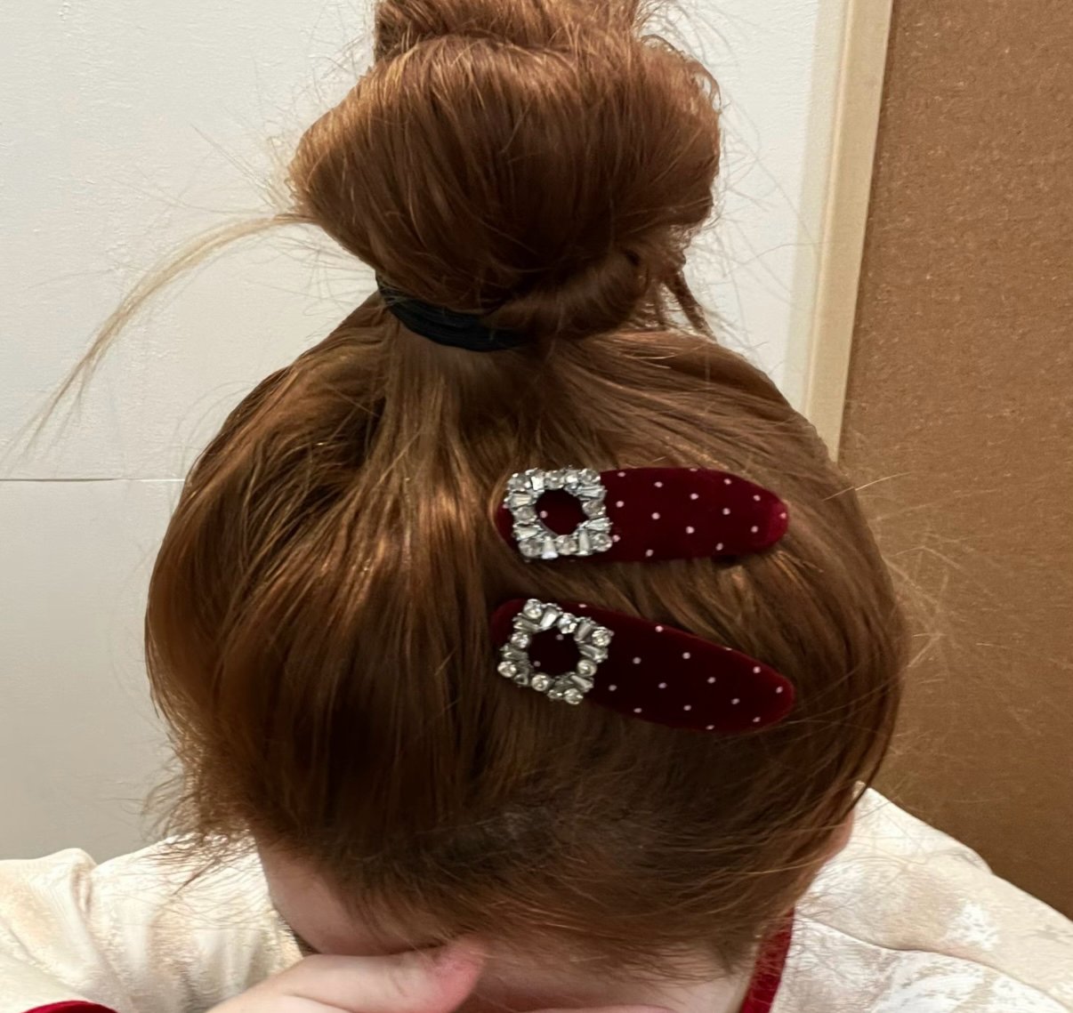 A love letter to vintage style—this red velvet polka dot hairpin with rhinestones is your new go-to accessory for adding retro charm to any look. Crafted from soft, luxurious velvet in a vibrant red shade, paired with playful polka dots and sparkling rhinestones, it’s the perfect mix of cute and elegant.